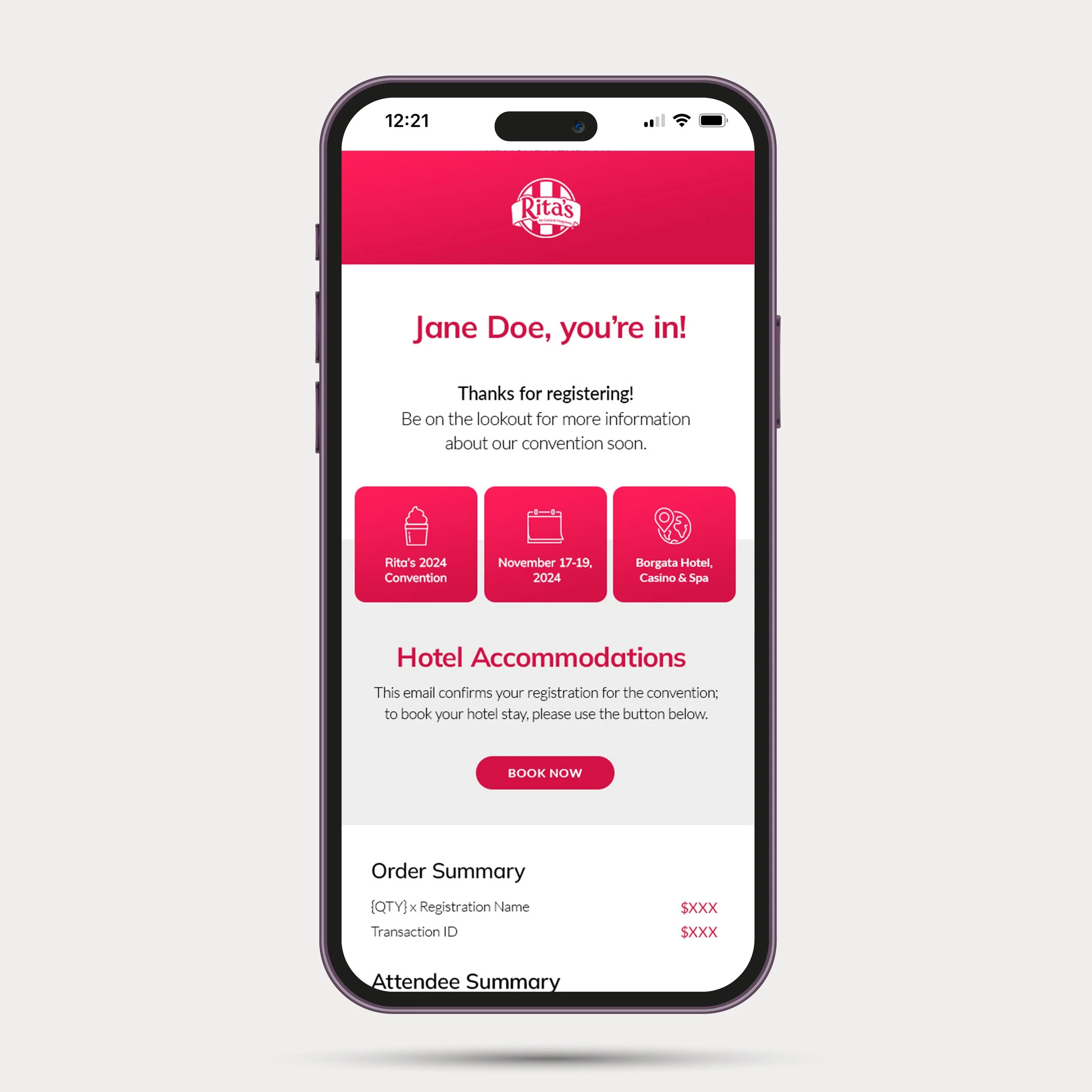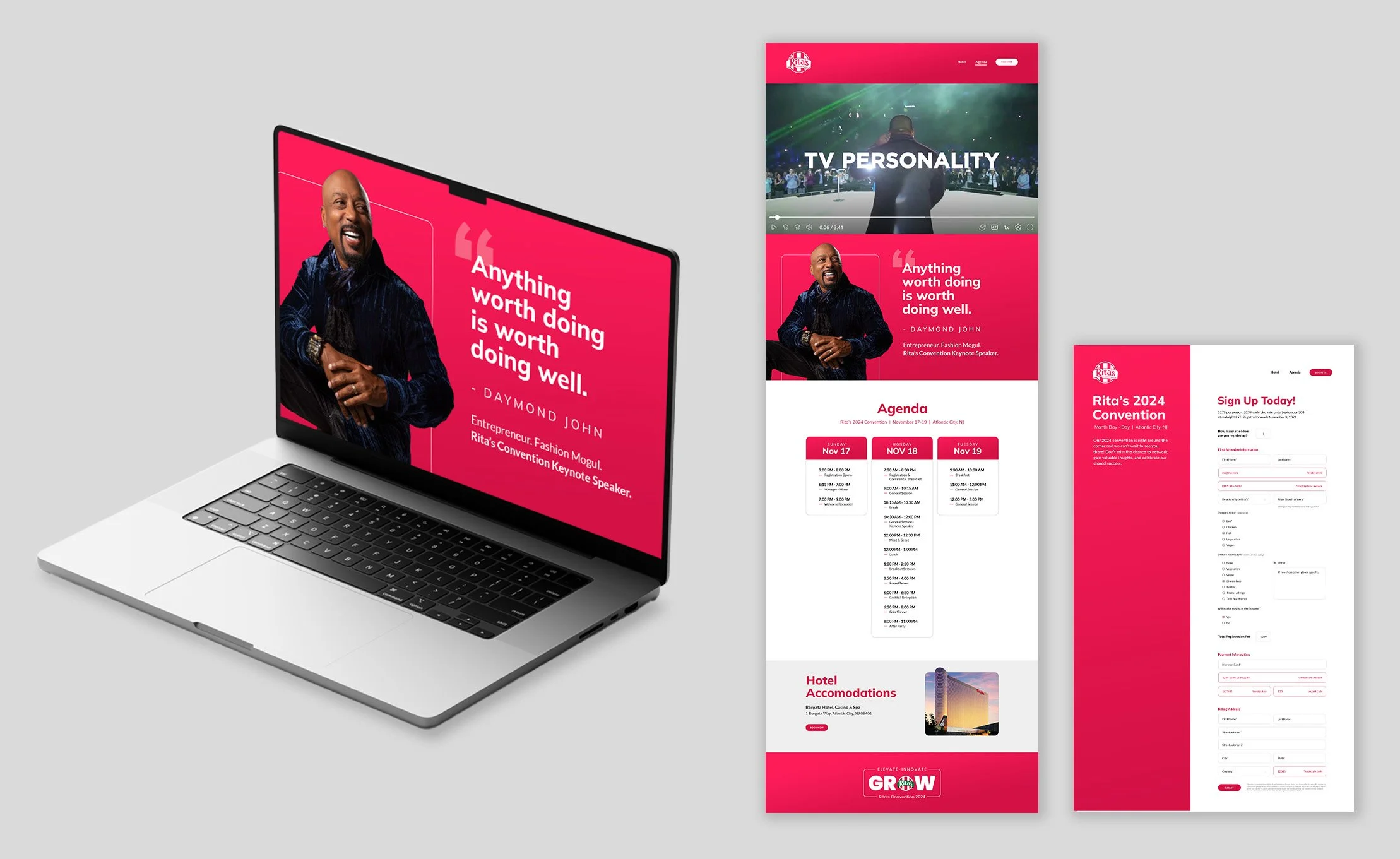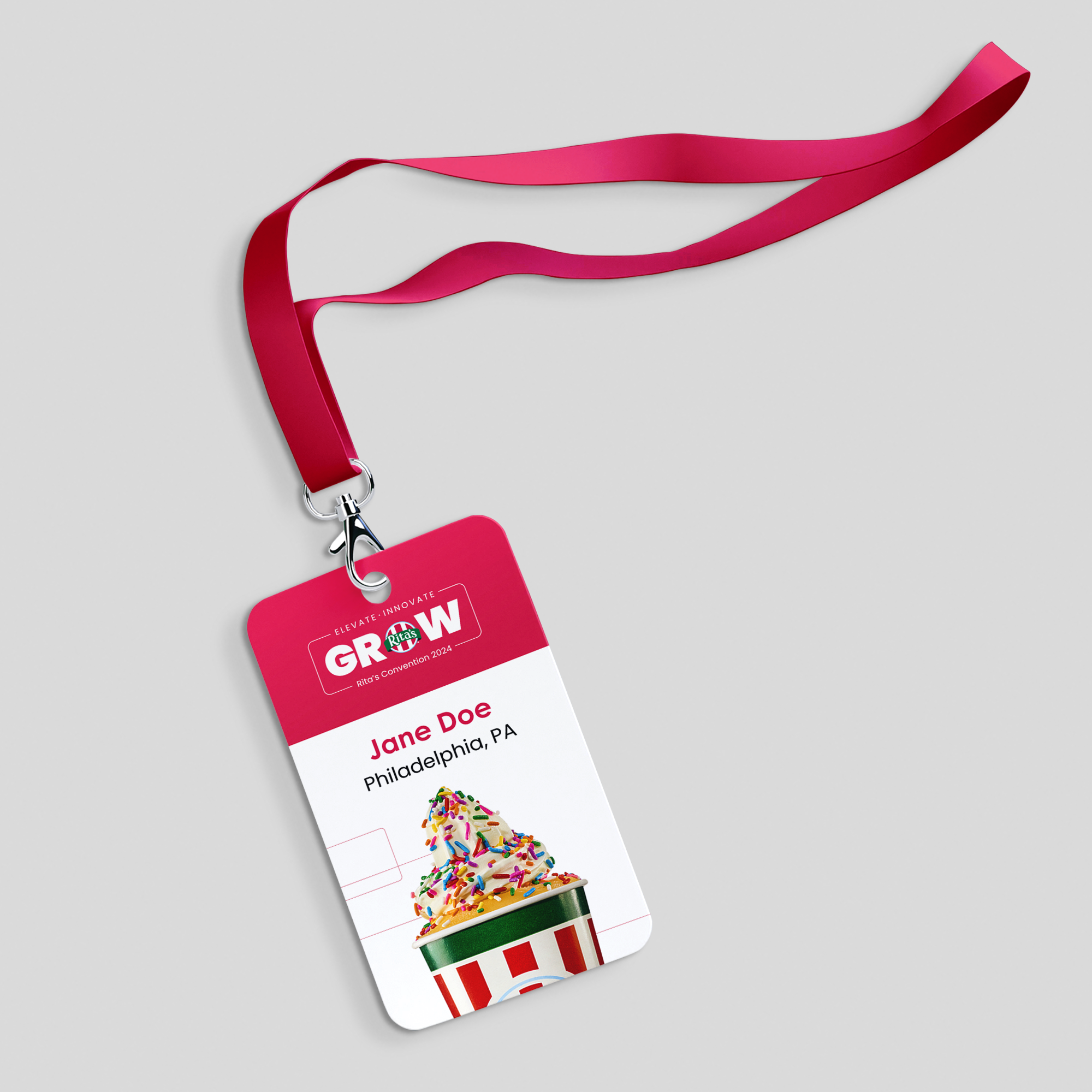 Every year, people gather for the highly anticipated Rita’s Annual Convention. This event brings together employees from shops, franchisee owners, shareholders, internal marketing professionals, and more to reflect on and celebrate the success of Rita’s Italian Ice over the year prior. Each year, this event requires a visual identity that falls within the well-known Rita’s brand while still setting the event apart. This visual identity includes logo design, event signage and merchandise, website and app screens, and more.